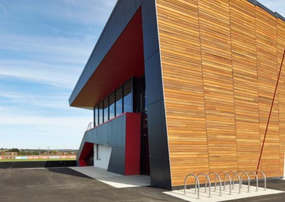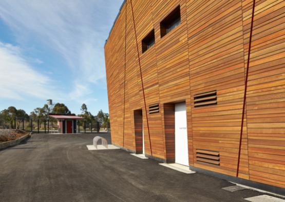 Recycled timber from Shiver me Timbers was used in the construction of Ballarat Regional Soccer Facility for the exterior cladding as well as the interior decorative wall paneling.