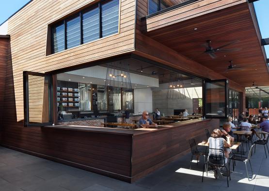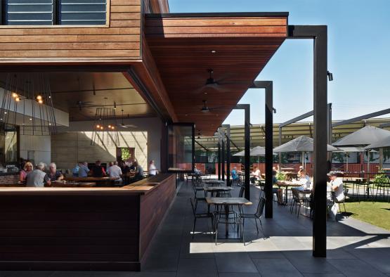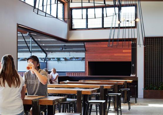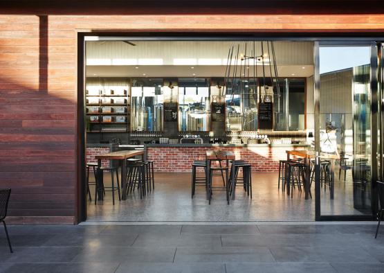 Materials were chosen carefully to complement the existing buildings on the site, and reimagine the sites former function. The brewery, restaurant, and supplementary buildings are all clad in Australian Ironbark timber. The unified exterior palette sits pleasantly and softly into the coastal landscape.