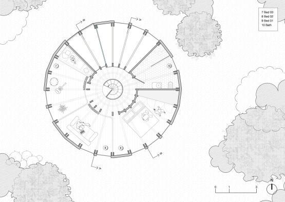 Simple circulation was one of the main design outcomes of the St Andrews Beach House. The byproduct of the round form is a default circulation. Occupants are implored to circle around the floor plan, with the circular motif continuing with the centrally located spiral staircase. The unusual plan provides a liberating spontaneity and adaptability.