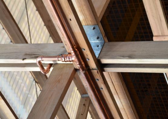 The adaptive reuse of the former cigarette factory's industrial shell has set the backdrop for the new timber post and beam intervention.