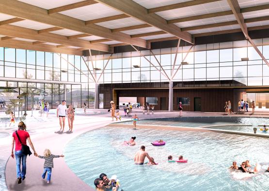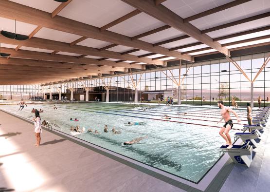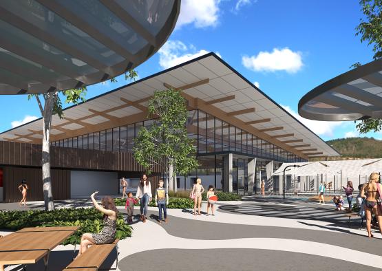 The longest spanning glulam roofing structure in Australia covers a 50 metre swimming pool.