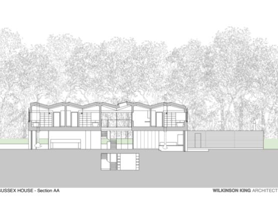 Overlooking sweeping views to the Sussex South Downs, this house is composed of a series of layers, which echo the horizontality of the meadows and hills.