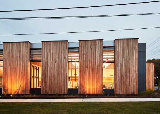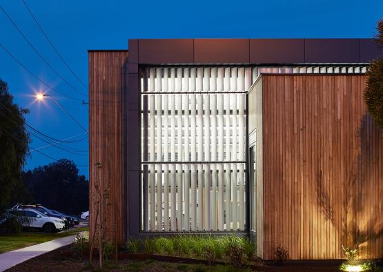 The timber used in this project was locally available and grown and has been sourced from FSC certified sources. Additional ESD Initiatives include passive solar design principles, use of materials with recycled content and/or from sustainably sourced local materials, solar array grid connected to offset electricity usage, zero VOC contained materials in the building, energy efficient electrical and water efficient fittings, allowance for connection to rainwater tanks and use of non-potable water to amenities, high performing acoustic treatment with acoustic lined wall finishes and acoustic ceilings for privacy of telephone calls as well as drought tolerant/hardy landscaping to building surrounds.