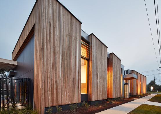 Timber was selected within the new McKenzie Street Aged Service Centre as a way of helping council continue their identity as a sustainably-driven community. k20 Architecture's design concept for the project is of clasping hands and the symbolism of this embrace aims to put aging people at the centre of the community. Timber is a natural product that connects people with the environment, and timber also captures memories and sensory experiences. All of the timber used in this project (externally and internally) is either FSC certified, locally sourced or recycled. Being a public building, it is important that the external aesthetic is approachable, and the use of timber facilitates this. The centre caters to the ageing population of Melton City Council, focusing on promoting inclusion within a range of available services and activities.