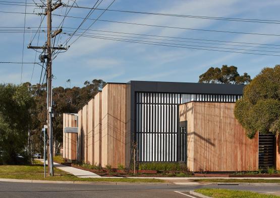 Timber cladding was chosen as it is a reference to something living, rather than an artificial material which reinforces the idea of community, being a natural product it connects the end user with the natural environment. For this project the existing facility-facade was re clad using the same Blackbutt timber as the new facility to create a single community identity.
