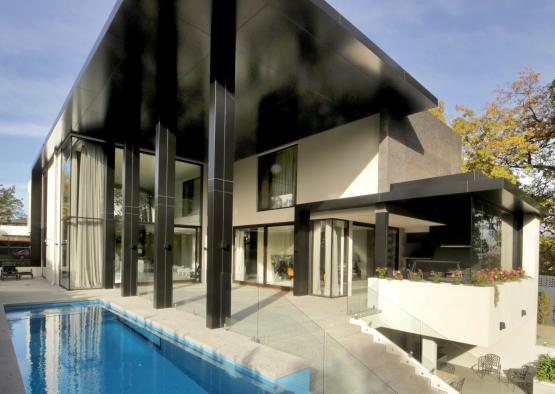 Deep charcoal timber frames and the transparency of glass are a highlight in this light filled, energy efficient residence.