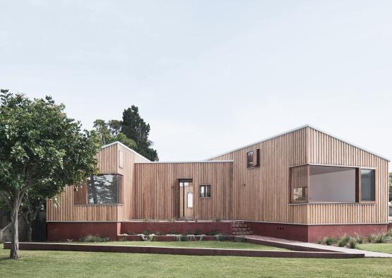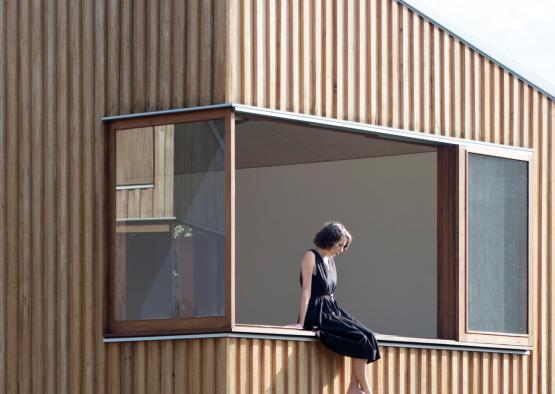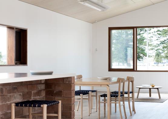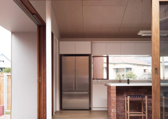nside the residence, a pared back palette of timber and plasterboard brightens the space dramatically. The timber floors and plywood ceilings reflect light beautifully across the space, creating a mood of warmth and calm.