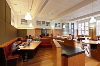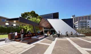 Melbourne University's Eastern Precinct Student Centre supports students in undergraduate science programs. The building project included refurbishment of existing teaching, library and retail spaces across different buildings (including the historic Frank Tate Pavillion); a new infill building housing the Science Student Centre; and new external pavilion structures.