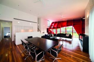 Variation in the warmth and textures of the Spotted Gum is designed to bring the house's residents closer to nature, a desirable feature in a holiday house. As Spotted Gum is a hardwood, an added benefit is that the floor is resistant to wear - ideal in house that welcomes sand and sea.