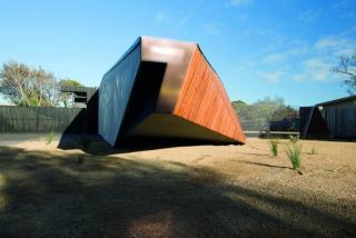 Letterbox House, in Blairgowrie on the Mornington Peninsula, displays a prominent copper street number built into its facade - the number 7 - suspended over the letterbox for which the house is named.