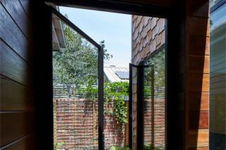 Tower House is a long-term family home and the boys will be adults when (if!) they leave. The house can easily adapt from being a shared family home to being two separate zones with distinct entries. Within the original house there are hidden sliding panels which allow the large shared rooms to be divided into smaller spaces. A variety of different activities can take place, whether shared or private; the best of both worlds.