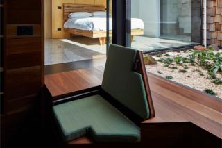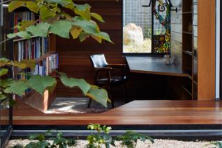 The house's library is a place of thought and contemplation. Slightly submerged, the desk is almost buried in the garden. Lined with dark spotted gum the library has an age and a wisdom that is in contrast to the playful contemplation of the boys study.