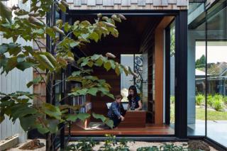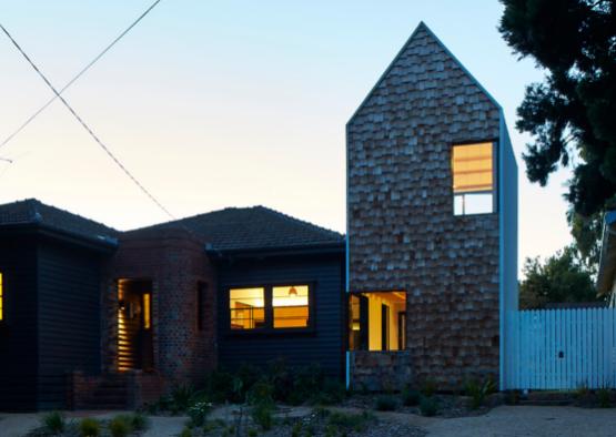 Increasingly our houses are overly concerned with privacy. Fences are getting higher, we are turning our backs to our neighbours and our houses are starting to look less like homes and gardens and more like compounds. Tower House tries to merge a secure home with a communal village. The front yard is now a communal vegetable patch, with the neighbours invited to help themselves and, if they wish, do a little gardening from time to time. The rest of the garden has a high fence around it; however it is possible to see through the fence and, importantly, the gates can be left open wide. With streets on both sides of Tower House, neighbours can use the garden as a short cut and grab a few veggies on the way through. With the gates wide open the line between public and private starts to get blurred.