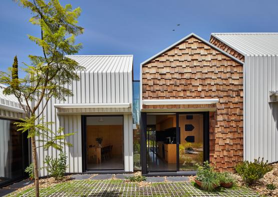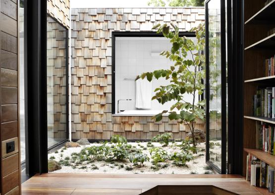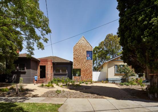 The proposition of Austin Maynard Architects was to create a series of small structures of a scale and texture that did not dominate its context. Tower House is anti-monolith. A village externally and a home internally. The house defies logic as the exterior appears to be a series of small structures, while internally the spaces and functions are large and connected.