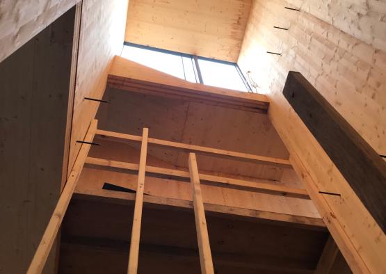 The CLT was prefabricated off site before being assembled together by a team at the site. This allows for precision, shorter construction time, and less waste. Along with this, timber is a renewable material that acts as a carbon sink.