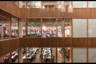 A facade of fixed terracotta tiles on the Northern and Western faces form the first layer of defense against the sun. They are angled to provide optimal shading throughout the day that plays a large role in reducing the solar impact on the building and the need for energy intensive air conditioning.