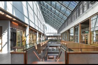 A mix of concrete, steel and timber make up the structure of the AEB, with each material cleverly exposed to visitors. In this case, many of the visitors are civil engineering students, who will have the opportunity to think about the member strengths and sizes of the building as they learn about engineering structures.