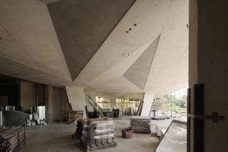 The external facade was therefore created from a palette of traditional materials: concrete, glass, and terracotta - one of the oldest common building materials. Concrete elements were shaped by a complex geometry of soffit formwork and sharp acute angles.