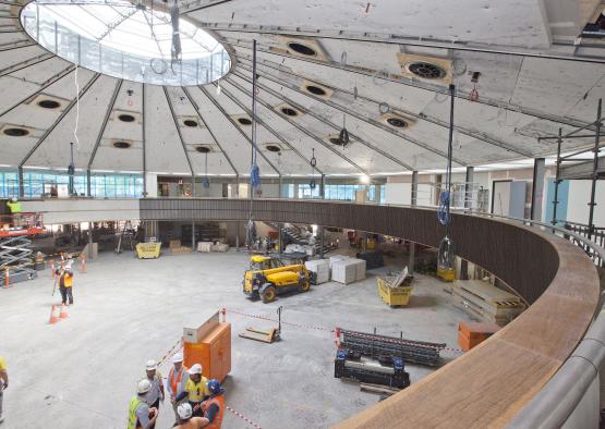 TZG replicated the original parquetry floors using 100% FSC certified spotted gum timber. The original parquetry had performed well for over 40 years, so replacing it in the same style was an obvious choice. The fine patterning of the timber parquetry works in juxtaposition with the purity of the circular plan, and is resilient to scuff marks, disguising wear and tear in the grain. TZG went for a natural oil based finish partly as it highlights the beauty of the natural grain, but also for its environmental credentials.