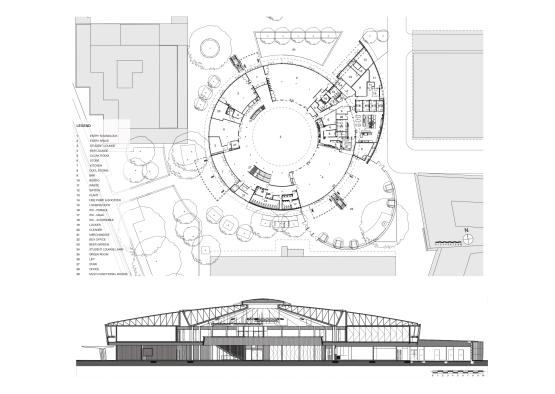 Many attempts at rejuvenation of the Roundhouse lad left it looking like a scrapbook of its former self, and the building fabric was tired and shabby. The goal in the addition and renovation by TZG was to not only rejuvenate the space, but bring it up to code in acoustic, thermal and energy use standards.