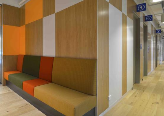 Joinery and Cabinetry: White birch lockers; Victorian ash edging to blade walls; oak joinery desks in quiet rooms.