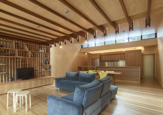 The extensive internal coverage of plywood panels provide acoustic treatment, uniquely defines the internal spaces and forms an integral part of the overall timber language of the residence.