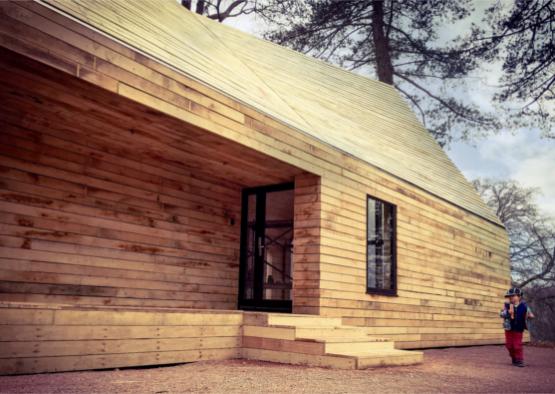 Invisible Studio was commissioned to build two new buildings for the Wolfson Tree Management Centre in the Westonbirt Arboretum, Gloucestershire, UK. The buildings make up the new tree management centre, comprising of a machinery storage building and a mess hall for the workers at the arboretum. There was a particular focus on using timber from the arboretum, as the client has an extraordinary resource which they had not previously exploited for building. As a result, all the timber was grown and milled on site and used untreated for the construction with no further processing.