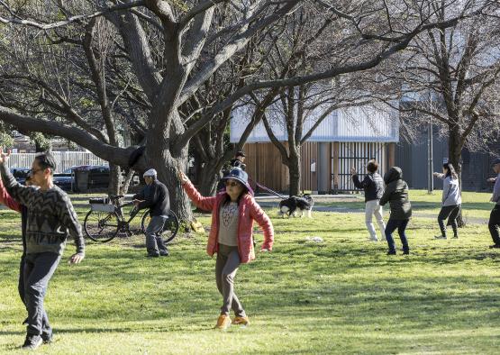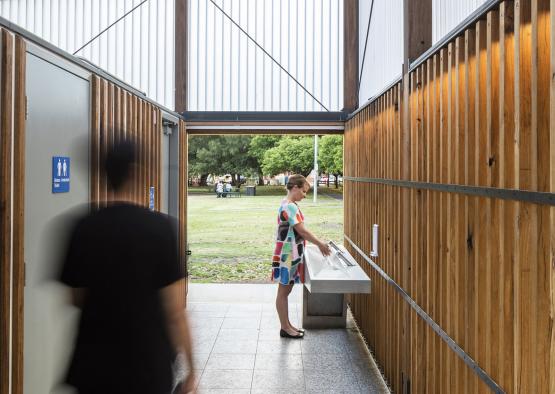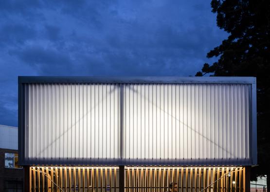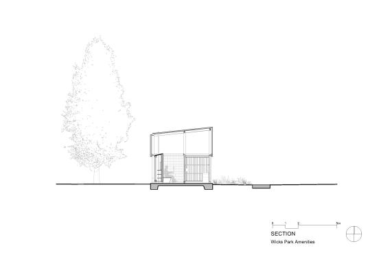 The Wicks Park Amenities building was conceived as a lantern in the park; welcoming, open and light throughout the day, and a beacon in the evening.