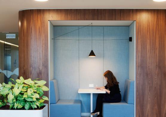 All elements were meticulously matched and sampled. The timber veneer selection process was one with many parties involved. All of the pieces used were produced to the highest standard and were monitored to maintain consistency over the seven levels of fitout. The veneer used was successful in all parts of the project. When paired with bright colours and café style furniture, the walnut became “fun” and inviting, yet when paired with crisp white and metallic elements in the executive areas, the walnut becomes sophisticated and refined.