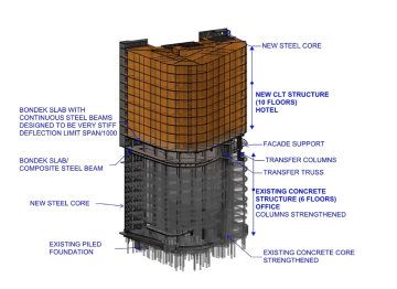55 Southbank Boulevard is a defining new landmark in Melbourne and the world’s tallest timber building extension, with a 10 storey cross laminated timber (CLT) structure sitting on top of an existing 1989 seven storey concrete building. Delivering the project in concrete and steel only allowed six storeys, making it uneconomical. In addition to being significantly lighter than concrete so providing an additional four storeys, using CLT also resulted in lower transport costs and therefore reduced carbon emissions. Due to offsite fabrication, including prefabricated modular hotel bathrooms, the time spent on site was significantly reduced. Sequestered within the timber itself is approximately 4,000 tonnes of CO2 emissions, the equivalent of the annual carbon emissions of 130 homes. The use of this carbon negative material represents an opportunity to create a new paradigm in sustainable construction. The project has overcome significant technical challenges and we are lucky to be speaking with members of the project team.