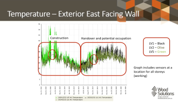 The research objectives were to obtain real data on the temperature, relative humidity, moisture content of timber and the vertical displacement per storey. The research was successful in obtaining 18 months of data, and this presentation will provide this update.