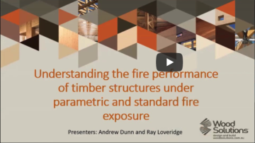 This presentation discusses the fire design of exposed timber structures under fire conditions, with a focus on explaining when to use real and standard fire time/temperature curves. The differing char rates timber has when exposed to varying temperature, duration and ventilation conditions are explained. The recently revised AS/NZS 1720.4 Timber structures Fire resistance of timber elements, standard are also discussed.
